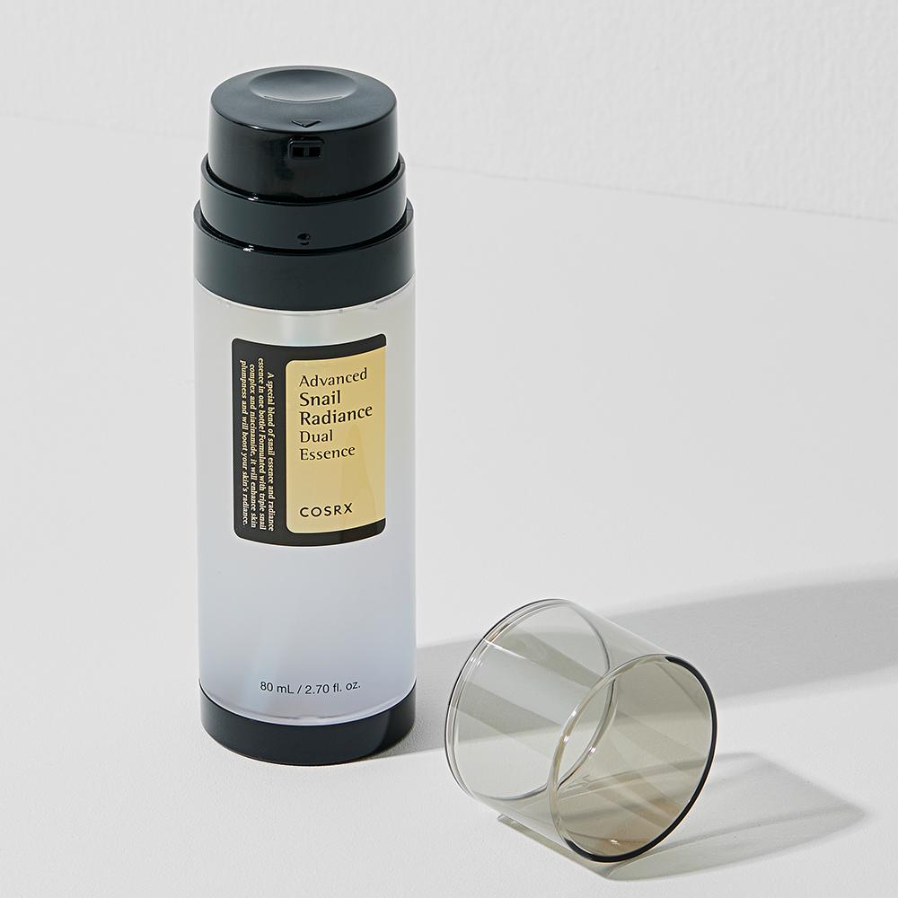 Το Cosrx Advanced Snail Radiance Dual Essence είναι ένα διπλό essence που συνδυάζει τα οφέλη της βλεννίνης σαλιγκαριού και την νιασιναμίδης. Μια αντλία, δυο πανίσχυρα συστατικά, ένας συνδυασμός που φωτίζει, ενυδατώνει, συσφίγγει και αφήνει την επιδερμίδα πιο ελαστική και plumped. Το εκκριμμα σαλιγκαριού κάνει απαλή απολέπιση, η αλλαντοίνη ηρεμεί και καταπραύνει, το κολλαγόνο και η ελαστίνη αναγεννούν τα κύτταρα και την επιδερμίδα.