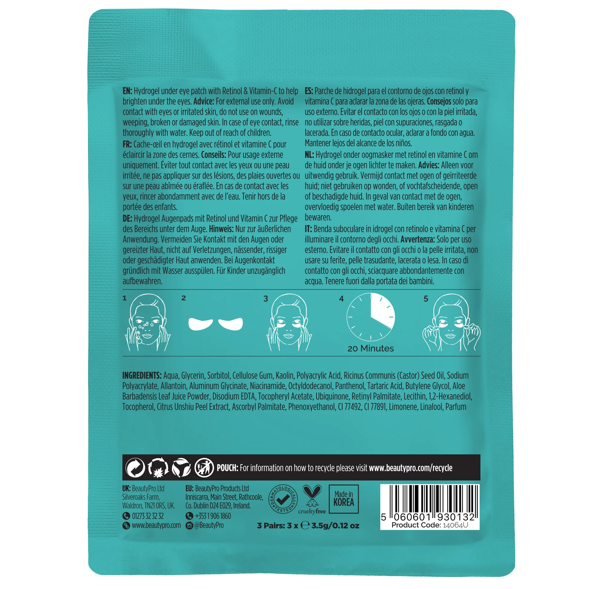 Τα βραβευμένα επιθέματα Ρετινόλης BeautyPro Retinol Under Eye θα σας βοηθήσουν να φωτίσετε τους μαύρους κύκλους και να βελτιώσετε ορατά την εμφάνιση της μελάγχρωσης.