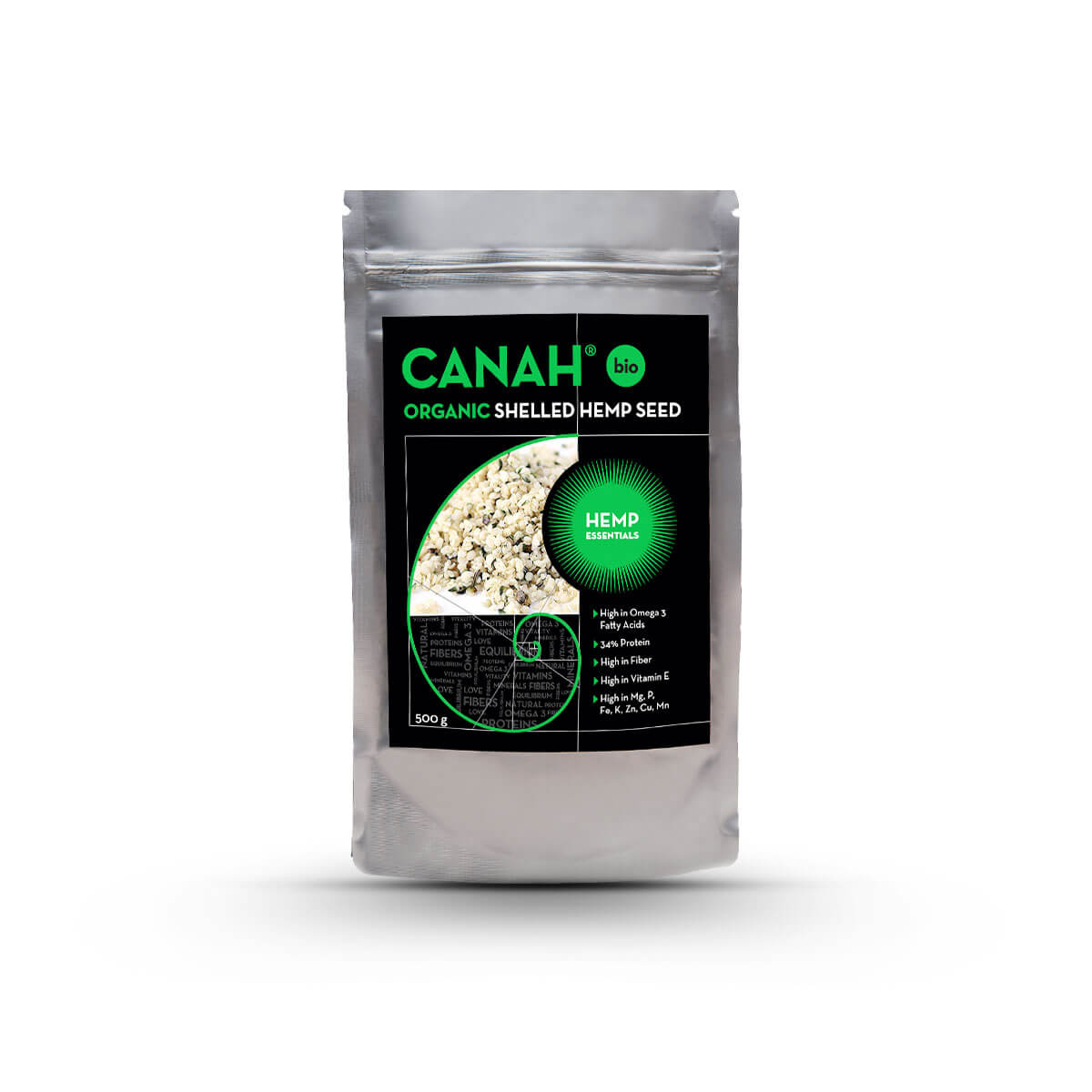 Canah Αποφλοιωμένοι Σπόροι Κάνναβης Βιολογικής καλλιέργειας σε συσκευασία 500 γραμμάρια