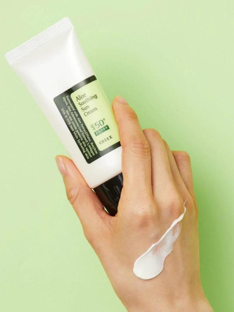 Το COSRX Aloe Soothing Sun Cream είναι ένα γρήγορο απορροφητικό αντηλιακό ευρέος φάσματος με ελαφριά υφή. Εμποτισμένο με εκχυλίσμα από φύλλα αλόης, ενυδατώνει και καταπραΰνει το δέρμα. Η αλόη βέρα είναι εδώ και καιρό γνωστή ως το ενυδατικό συστατικό που βοηθά στην καταπράυνση της επιδερμίδας μετά από υπερβολική έκθεση στον ήλιο. Σε έντονο ηλιακό φως, το δέρμα μπορεί να αφυδατωθεί πολύ, αλλά με την προσθήκη της αλόης στη σύστασή του διατηρείται ενυδατωμένο και θρεμμένο για περισσότερο χρόνο