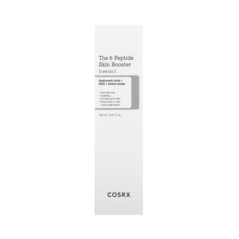 To Cosrx The 6 peptide skin booster serum είναι ένας πολύ λεπτόρευστος ενυδατικός με 6 ισχυρά πεπτίδια που ενισχύει τη συνολική κατάσταση του δέρματος και λειοτυργεί ως πρώτος ορός για να προετοιμάσει και να ενισχύσει την δράση των συμπυκνωμένων στοιχείων που θα ακολουθήσουν. 6 πεπτίδια που αποκαθιστούν και αντιμετωπίζουν πολλαπλές ανησυχίες.